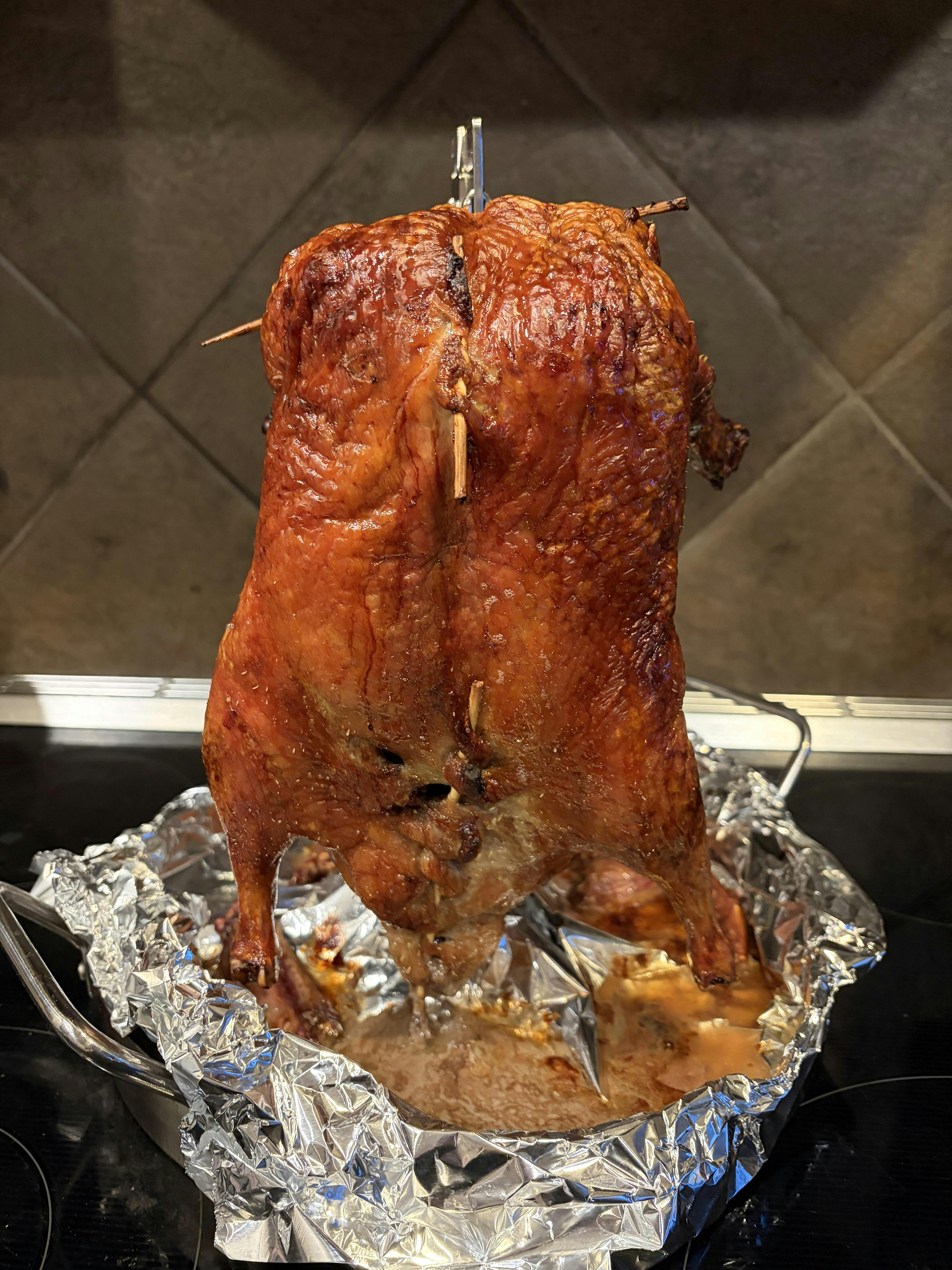 Crispy skin, even cooking, and clean fat rendering—made possible by vertical roasting with purposeful airflow beneath the meat.