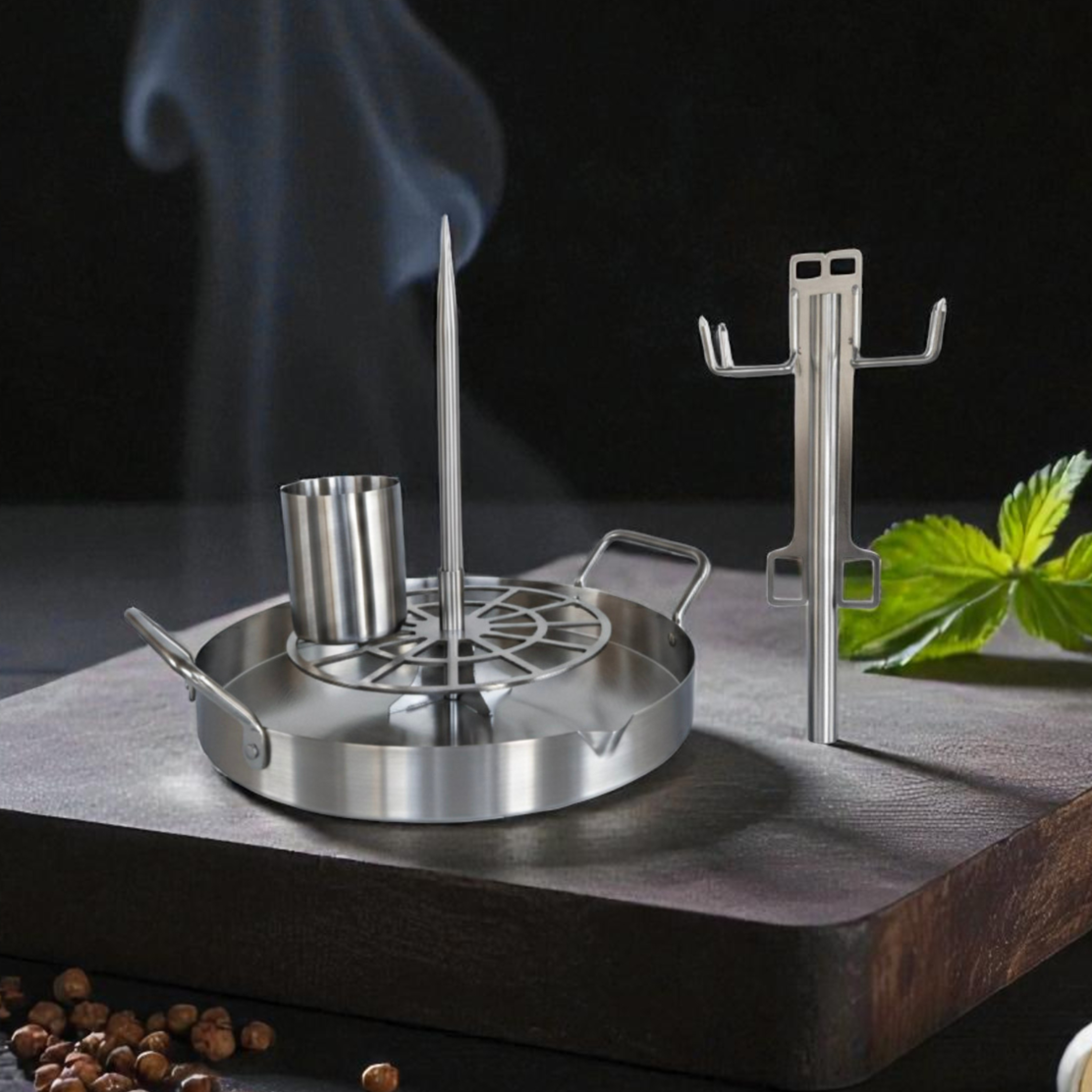 - Supports hanging, spit-style, or rack-based cooking